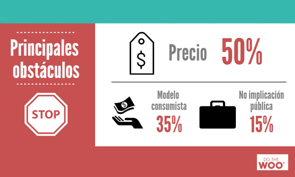 El 52% de las marcas opina que el incremento de la sensibilidad hacia la salud del medio ambiente de los últimos años en Europa es una de las principales oportunidades para el sector de la moda sostenible. Le siguen la incorporación de las nuevas tecnologías en la sociedad, con un 31% y el repunte del comercio de proximidad, con un 17%. En el otro lado de la moneda se sitúan los obstáculos, con el precio, más elevado que el de las prendas de grandes superficies low cost, en primera posición según la mitad de los encuestados y seguido por el actual modelo consumista de usar y tirar en un 35% y la falta de implicación pública en un 15%.